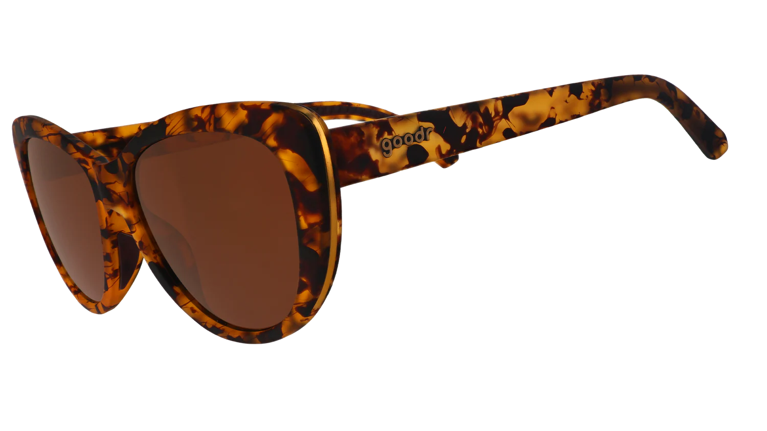 ME-OW!!! Passeggiate sul lato selvaggio con questi occhiali da sole tartarugati marrone ferocemente alla moda, con lenti marroni non riflettenti e accenti dorati. AVVERTENZA: indossarli può provocare un aumento delle lotte runway a causa dell'estrema invidia per lo stile.